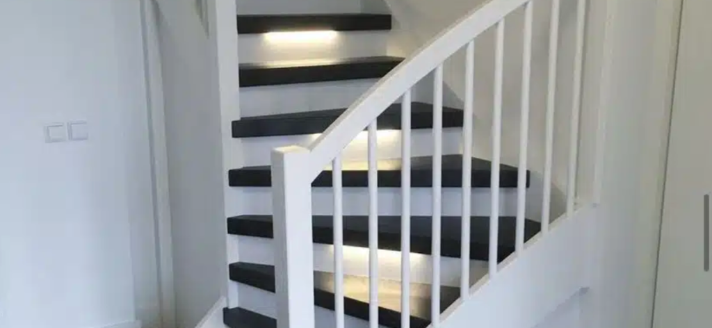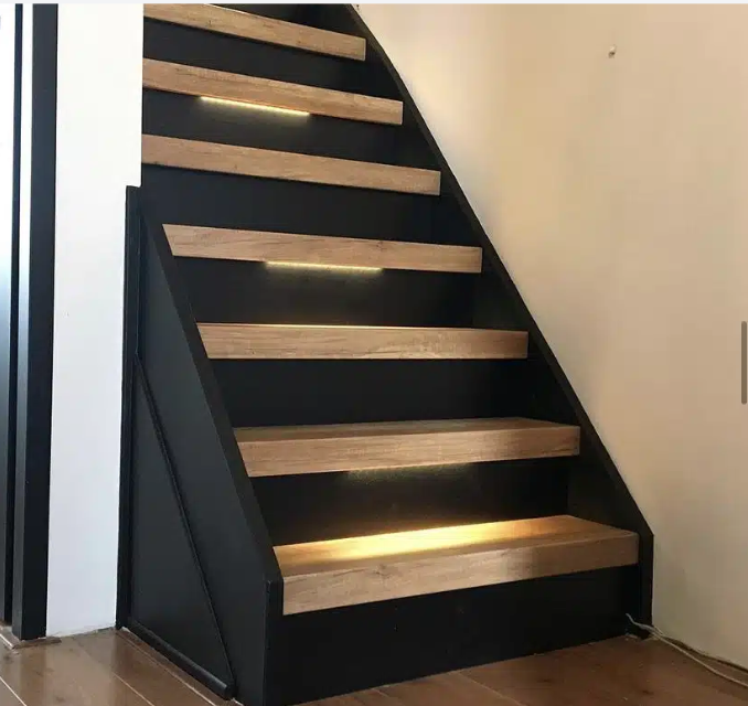 Zwarte trap met verlichting